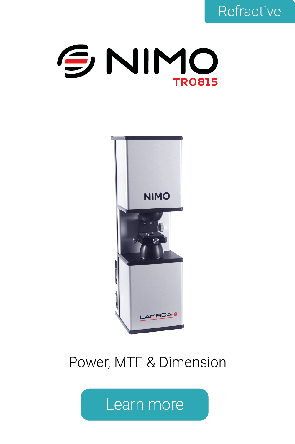 We chose Lambda-X’s NIMO technology for its superior accuracy and best R&R ratio, even with new operators. NIMO instruments deliver high throughput, quick ROI, and consistent performance across all IOL designs, making them a key asset for our operation.