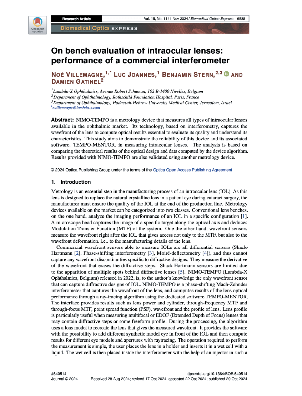 On Bench Evaluation of Intraocular Lenses: Performance of a Commercial Interferometer.